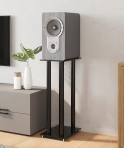 Pedane Per Casse 2pz Nero Vetro Temperato Design A 3 Pilastri