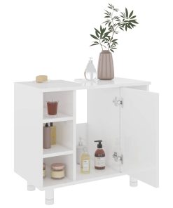 Mobile Da Bagno Bianco Lucido 60x33x61 Cm In Legno Multistrato