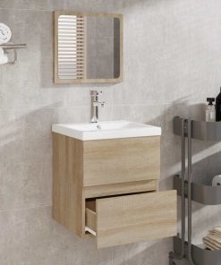 Mobile Da Bagno Con Specchio Rovere Sonoma In Legno Multistrato