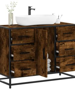 Mobile Lavabo Bagno Rovere Fumo 91x35x60 Cm In Truciolato