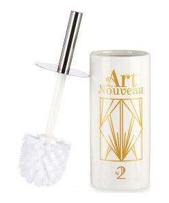 Scopino per il Bagno Berilo Art Nouveau Bianco Dorato Argentato Ceramica 9,6 x 32 x 9,6 cm