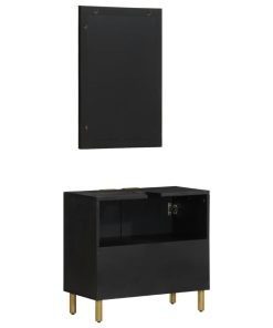 Set Mobili Da Bagno 2 Pz Nero In Legno Massello Di Mango