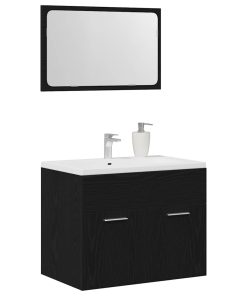 Set Mobili Da Bagno 2 Pz Rovere Nero In Legno Multistrato