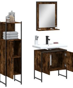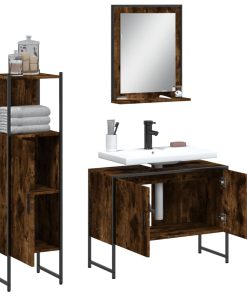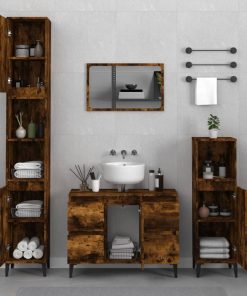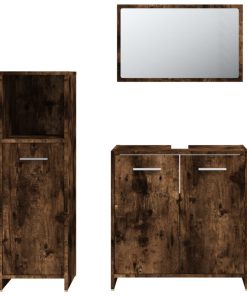 Set Mobili Da Bagno 3 Pz Rovere Fumo In Legno Multistrato