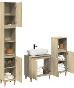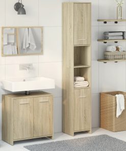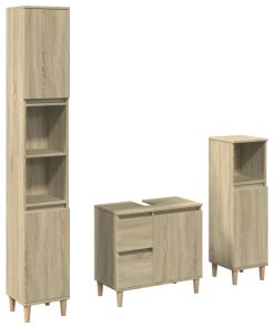 Set Mobili Da Bagno 3 Pz Rovere Sonoma In Legno Multistrato