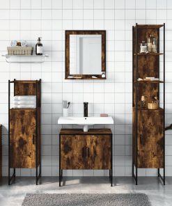 Set Mobili Da Bagno 4 Pz Rovere Fumo In Legno Multistrato