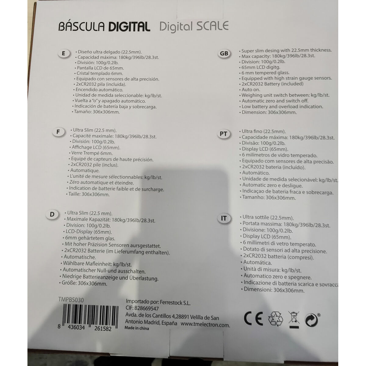 Bilancia Digitale Da Bagno Tm Electron Bianco