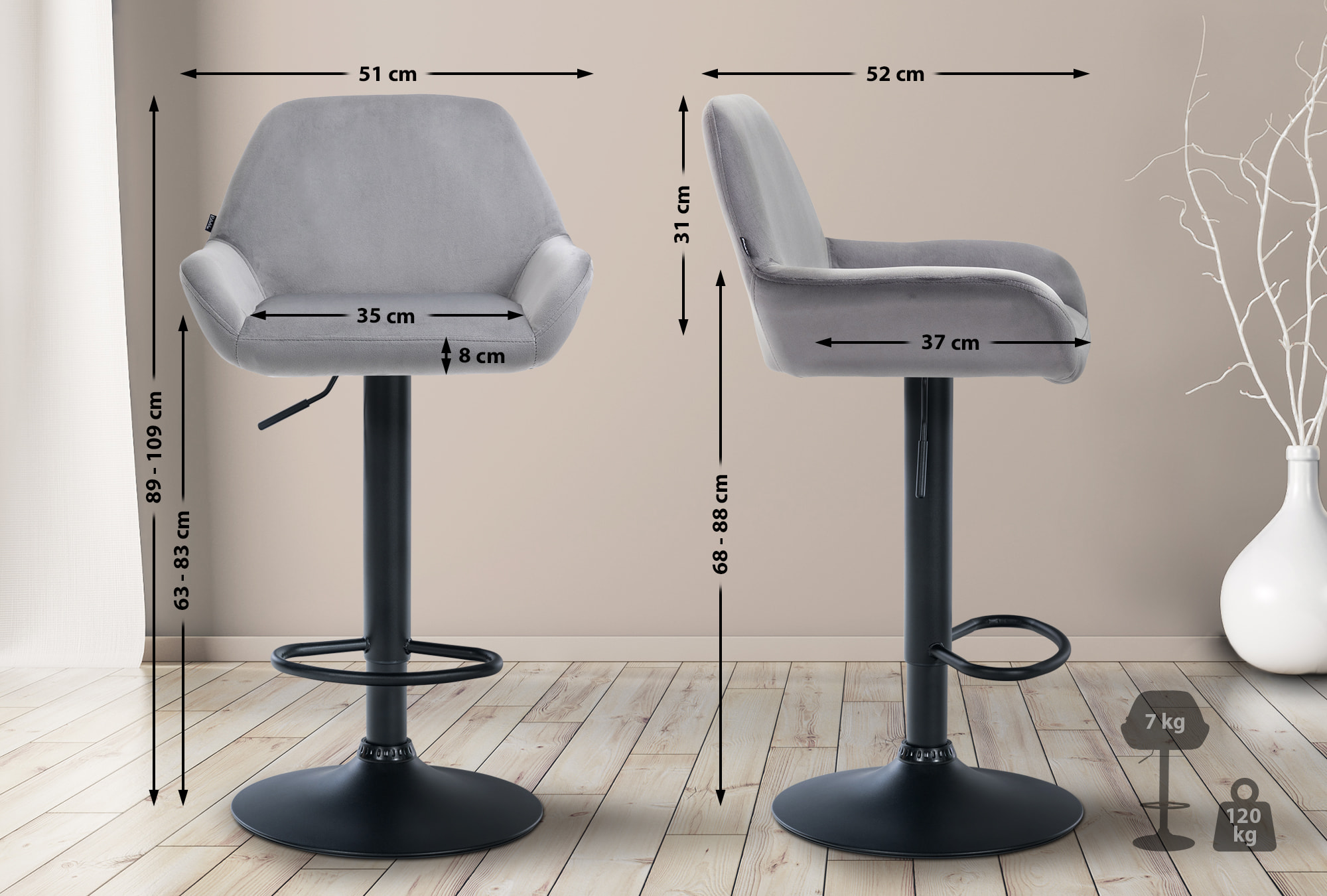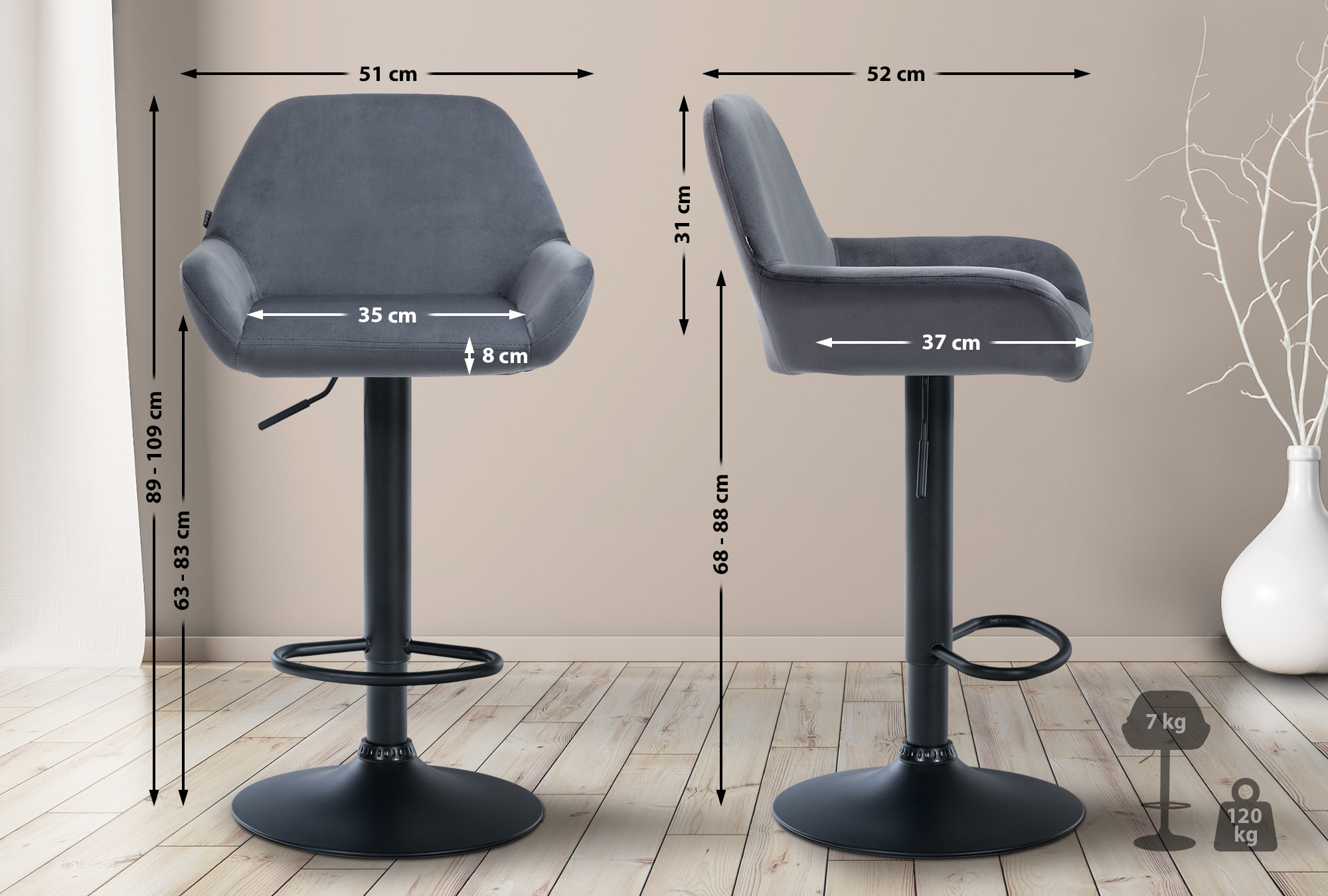 2er Set Barhocker Braga Samt Schwarz