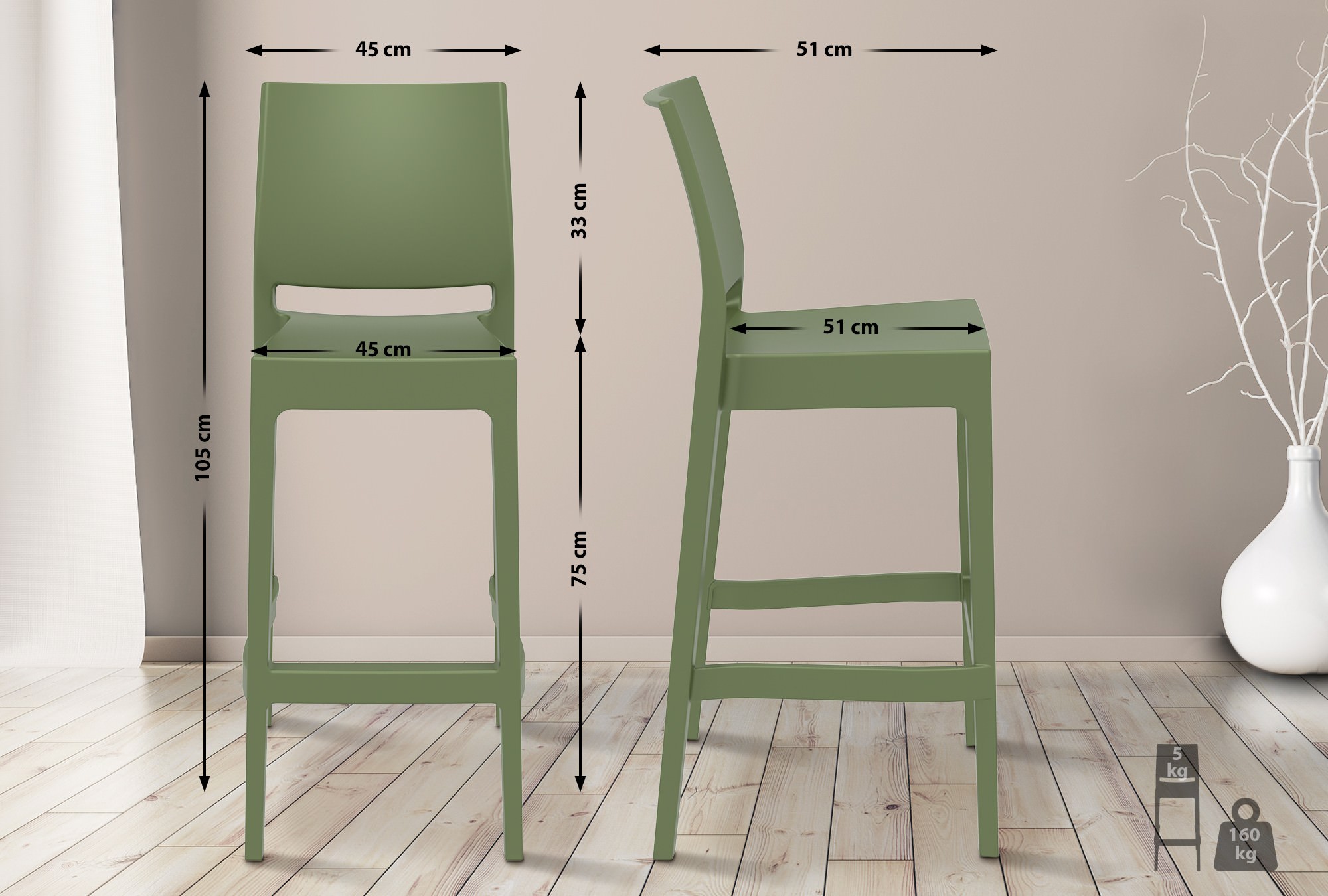 2er Set Barhocker Metz Kunststoff Natura