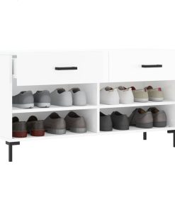 Panca Porta Scarpe Bianco Lucido 102x35x55 Cm Legno Multistrato