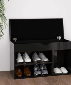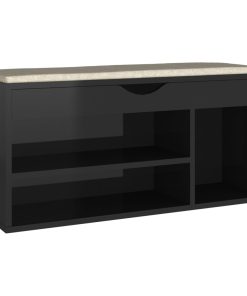 Panca Porta Scarpe Cuscino Nero Lucido 80x30x47cm Multistrato