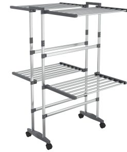 Stendibiancheria A 2 Livelli Con Ruote Argento 60x70x106 cm