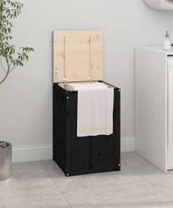 Contenitore Per Bucato Nero 88,5x44x66 Cm Legno Massello Pino
