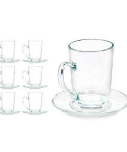 Tazza con Piatto Vivalto Trasparente Vetro 170 ml (6 Unità)