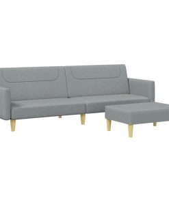 Divano Letto A 2 Posti Con Poggiapiedi Grigio Chiaro In Tessuto