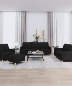 Set Di Divani 4 Pz Con Cuscini Nero In Tessuto