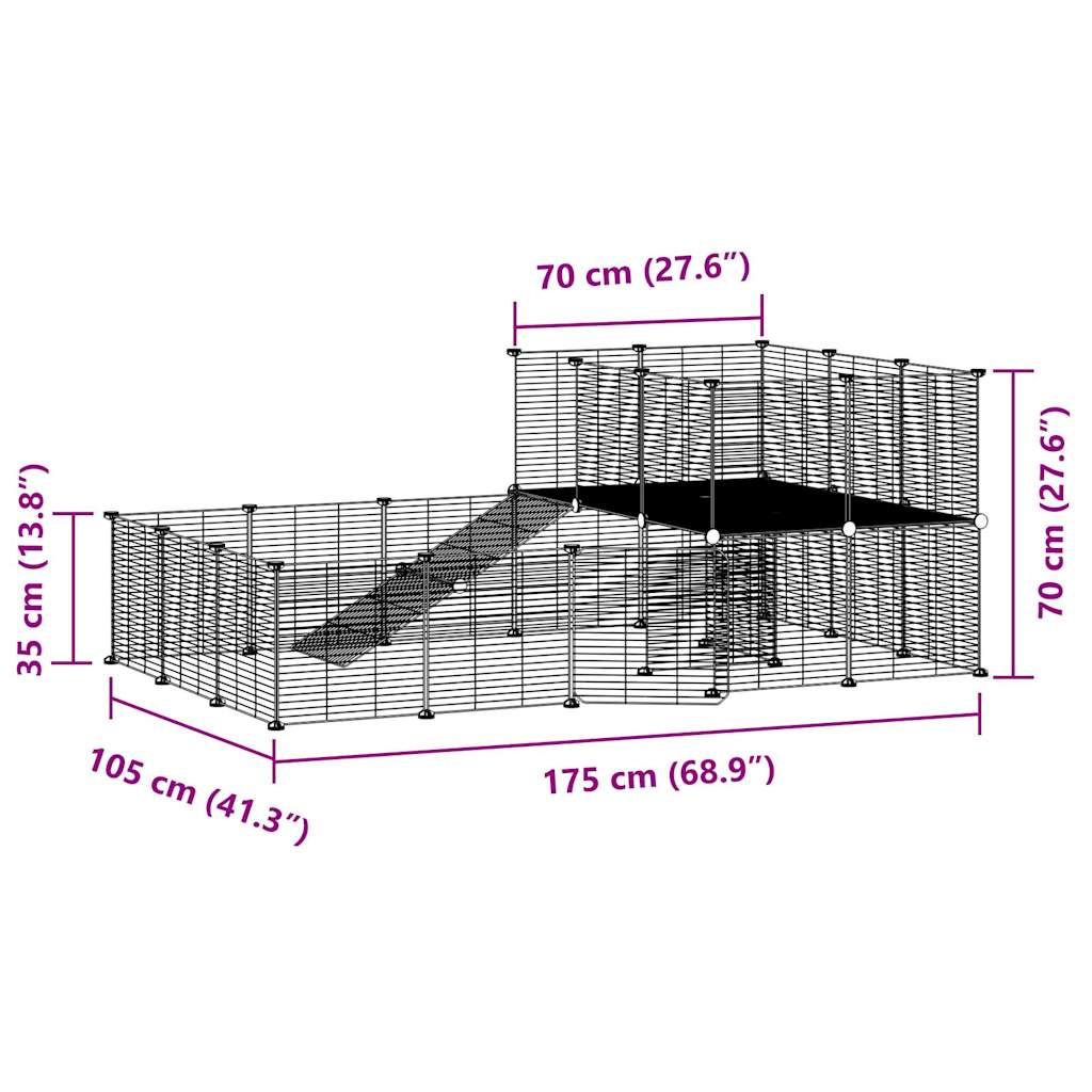Gabbia Per Animali 44 Pannelli Con Porta Nera 35×35 Cm Acciaio
