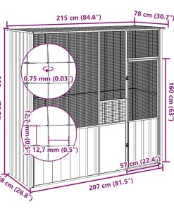 Gabbia Per Uccelli Grigio 215 X 110 X 247 Cm Acciaio Zincato