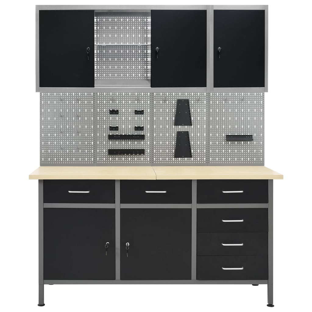 vidaXL Werkbank mit Schublade und Schraubstöcken 124 x 52 x 83 cm Massivholz Akazie