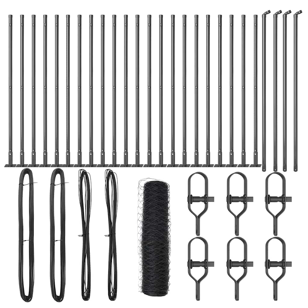 vidaXL Zaun mit Pfosten Grau 0,8 x 50 m Stahl