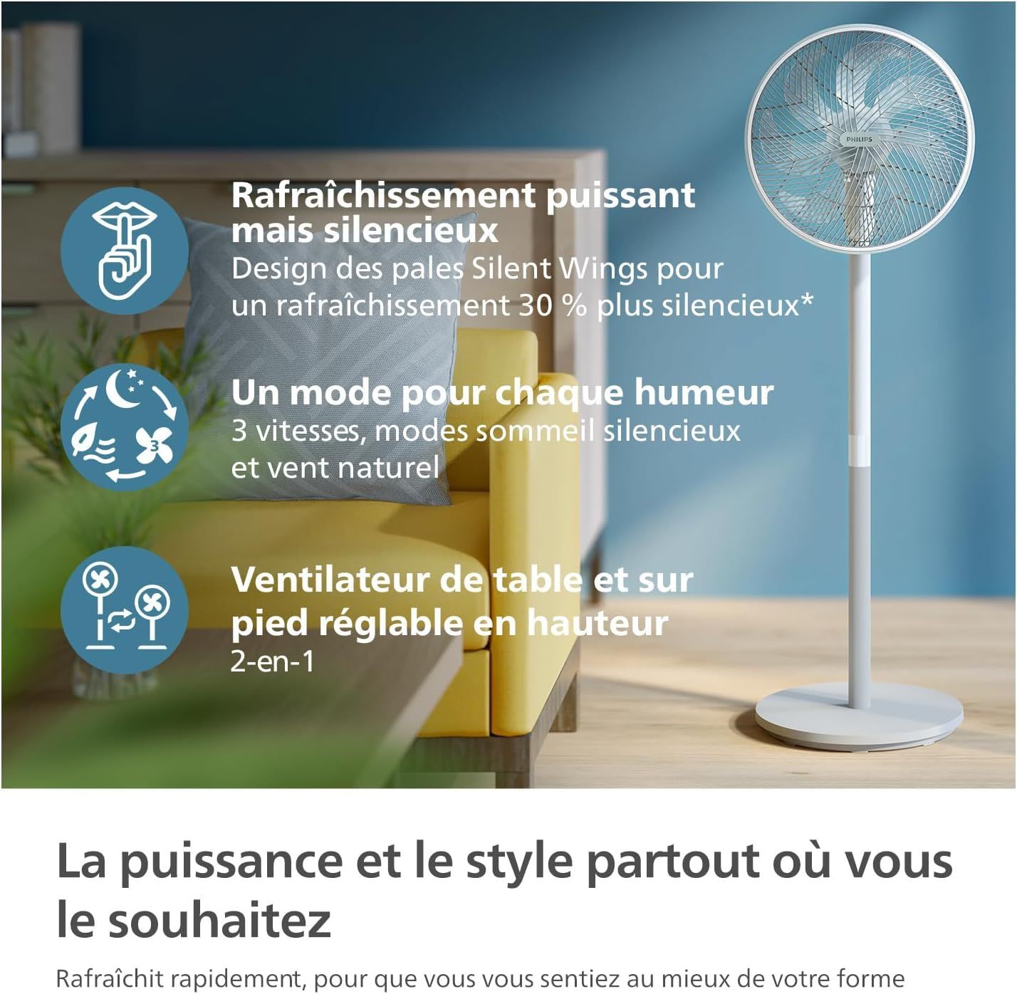 Ventilatore A Piantana – Philips – Cx2550/00 – Altezza Regolabile 82-125 Cm – Ultra Silenzioso – Bianco