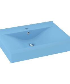Lavandino Con Foro Rubinetto Azzurro Opaco 60×46 Cm In Ceramica