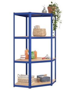 Mensola Angolare 4 Ripiani Blu In Acciaio E Legno Multistrato