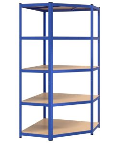 Mensola Angolare 5 Strati Blu In Acciaio E Legno Multistrato