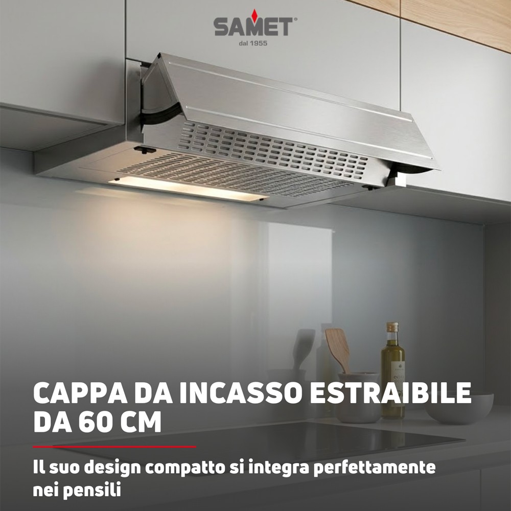 Samet Cappa da incasso sottopensile Estraibile 60 1 luce led 3 livelli di potenza classe D