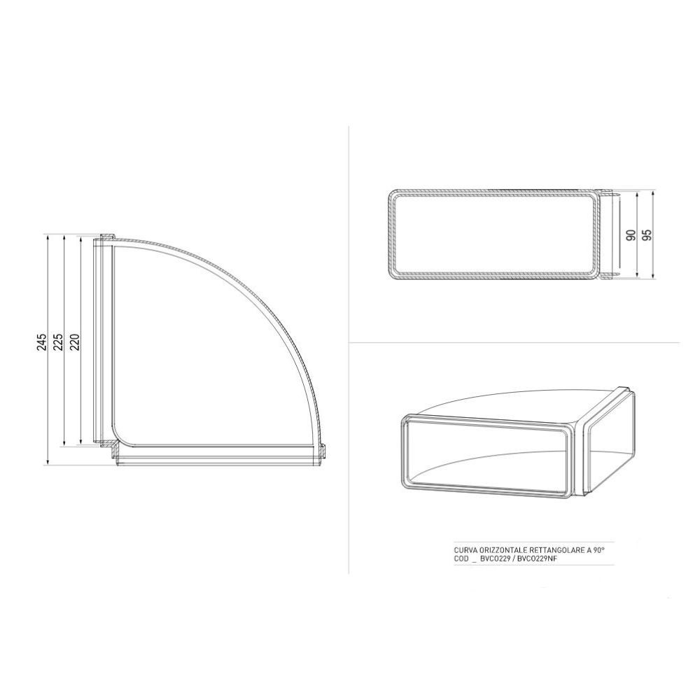 Curva orizzontale rettangolare 90 gradi per cappe BVCO229