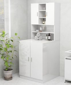 Mobile Per Lavatrice Bianco Lucido 64x24x190 cm
