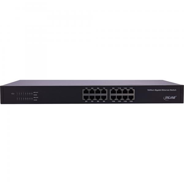 Inline Gigabit Netzwerk Switch 16-Port – 1gb/s – 19" 1he – Metall – Lüfterlos