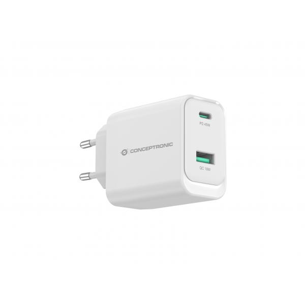 Conceptronic Althea20w45 2-Port 45w Gan UsB-PD-Ladegerät, UsB-C X 1, UsB-A X 1, Qc 3.0, Pps, Pd 3.0, Drinnen, Ac, 20 V, Weiß