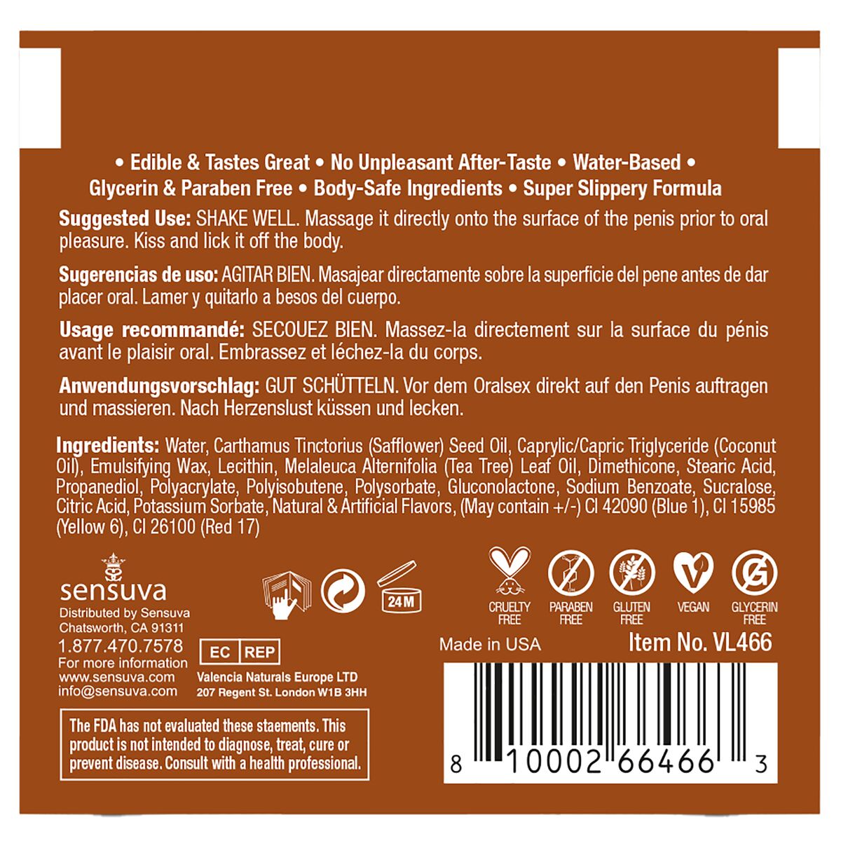 Lubrificante Aromatizzato Sensuva Caramello 6 ml 1 Pezzi