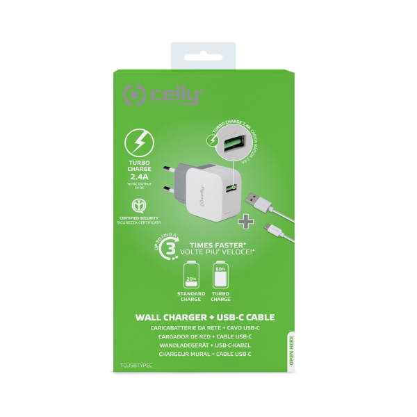 KIT TC USB 2.4A/12W+UB-C CABLE WH