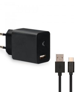 Caricabatterie da Parete + Cavo Micro USB KSIX USB 2A Nero