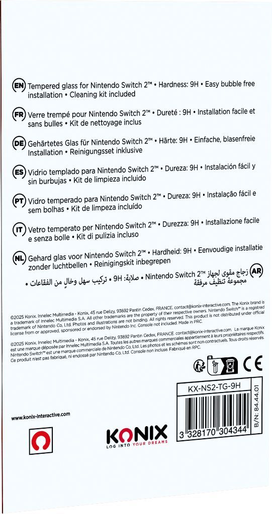 Pellicola Protettiva In Vetro Temperato – Konix – Nintendo Switch 2 – AntI-Bolle – AntI-Graffio – Durezza 9h – 100% Trasparente