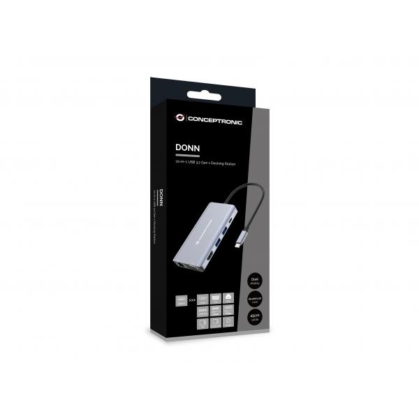 – Adattatore multiporta 10-in-1 da USB-C a HDMI/VGA/USB-C PD/USB 3.0/SD/TF/GbE/AUX