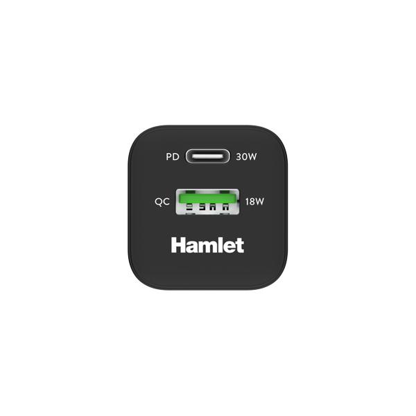 Hamlet GaN Charger è un alimentatore da parete da 30W dotato di tecnologia Power Delivery e Quick Charge. La porta USB-C Power Delivery fornisce una potenza di ricarica di 30W mentre la porta USB-A Quick Charge una potenza massima di 18W. L’alimentatore GaN Charger permette di ricaricare due dispositivi contemporaneamente e offre voltaggi da 5 a 20 Volt, a seconda della porta utilizzata, per ricaricare una vasta gamma di dispositivi. La nuova tecnologia basata sul Nitruro di Gallio (GaN) garantisce più prestazioni e meno ingombri quindi ridotto impatto ambientale a fine vita del prodotto.
