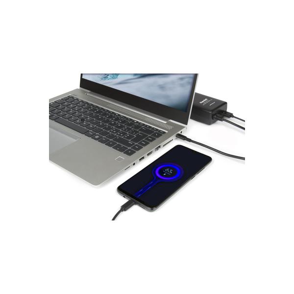 Hamlet USB Type-C Notebook Charger 100W è un alimentatore universale che permette di ricaricare velocemente notebook e dispositivi mobili come smartphone e tablet dotati di porta di alimentazione USB-C. La tecnologia USB-C Power Delivery rileva automaticamente il dispositivo collegato e fornisce la potenza corretta per la ricarica più veloce possibile. L’alimentatore è inoltre dotato di una porta USB-A che consente di ricaricare altri dispositivi con una potenza massima di 12W.
