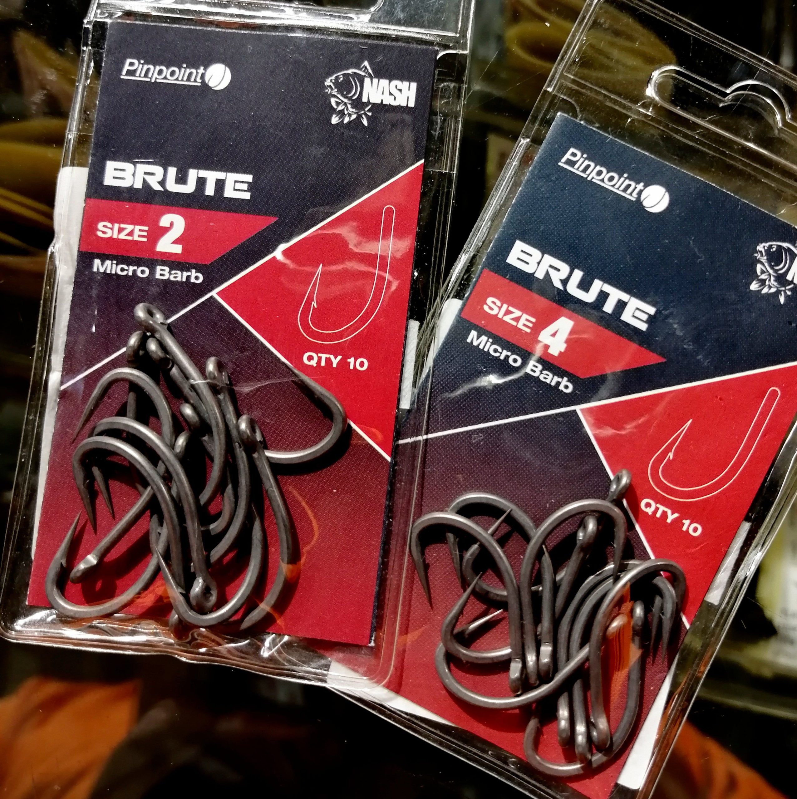 Gli Ami Brute di Nash, come dice il nome stesso, sono ami dall'incredibile potenza e resistenza. Gli ami Brute di Kevin Nash sono dotati di un filo molto spesso, cosa che li rende solidissimi e in grado di resistere ai combattimenti e alle trazioni più forti. Nelle foto allegate a questa scheda si può vedere il confronto tra un amo Nash Brute e un amo standard: la differenza è notevole! Questi ami da carp fishing dedicati alla pesca nei grandi laghi europei oppure alle acque ricche di ostacoli e di vegetazione, pur essendo molto spessi sono dotati di una punta molto sottile, cosa che li rende devastanti sull'abboccata. Grazie alla punta affilatissima Pinpoint, possiamo impiegare, con questi ami, anche piombi più leggeri, non necessariamente solo quelli 200 grammi in su. Gli Ami Brute sono la scelta giusta per le battaglie toste dei carpisti che non vogliono scendere a compromessi!