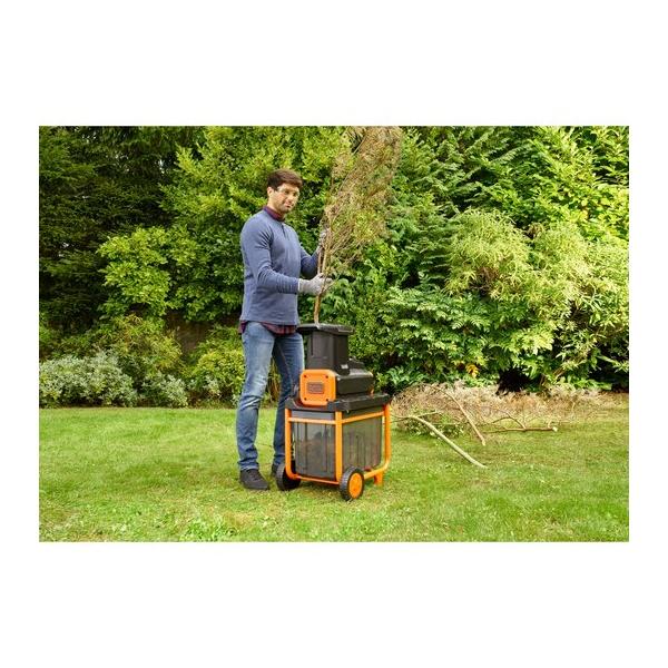 Biotrituratore stabile e compatto. Motore ad induzione per una maggiore sicurezza, un minor bisogno di manutenzione e una maggiore sicurezza. Taglia fino a 4,5 cm di diametro e ha una capacità del cesto di 45L. Il sistema di taglio è a rullo potafresa.