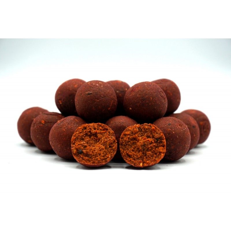 Le Boilies TopBait SquidBerry 15 mm di Karma Baits derivano dalle famosissime boilies solubili e sono di alto livello. A differenza delle boilies che si sciolgono in acqua, queste Boilies TopBait SquidBerry 15 mm assorbono lentamente il liquido come una spugna senza sfaldarsi. E rilasciano tutti i loro aromi: il mix birdfish Shiva (composto da farine di pesce, due di tipo LT, una predigest e una krill, con Robin Red originale Haith's) rilascia l'aromatizzazione a base di aroma fragola diluito in glicole, alcool e olio, mentre la presenza di Squid Octopus dà un tocco di pesce al mix. In più, una dose di pepe nero rende più pungente il gusto. Le Boilies TopBait SquidBerry 15 mm sono ideali da usare tutto l'anno, e sono rigorosamente cotte a vapore per non perdere l'impatto aromatico e qualitativo del mix.