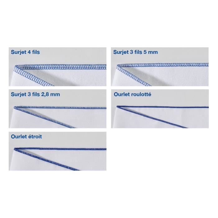2 aghi – braccio libero – piano di lavoro con illuminazione a LED – Corsi semplificate filettatura – dischi di tensione disimpegnabile – coltello retrattile – regolabile differenziale – Attuazione veloce del dito punto – premistoffa scatto piede: larghezza. 5 a 7 mm e lungo. 2 a 4 mm – Include Custodia protettiva – Garanzia: 3 anni
