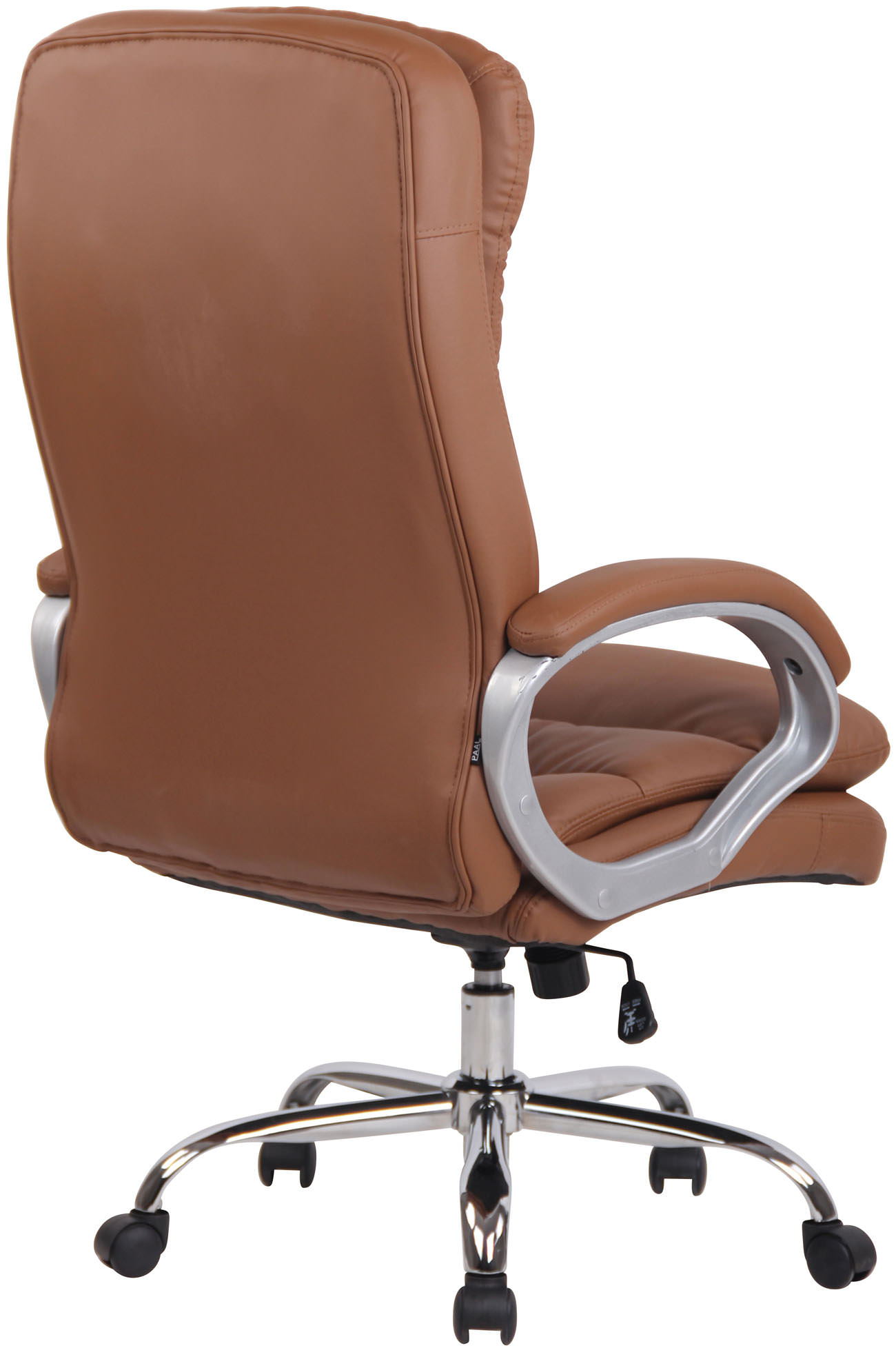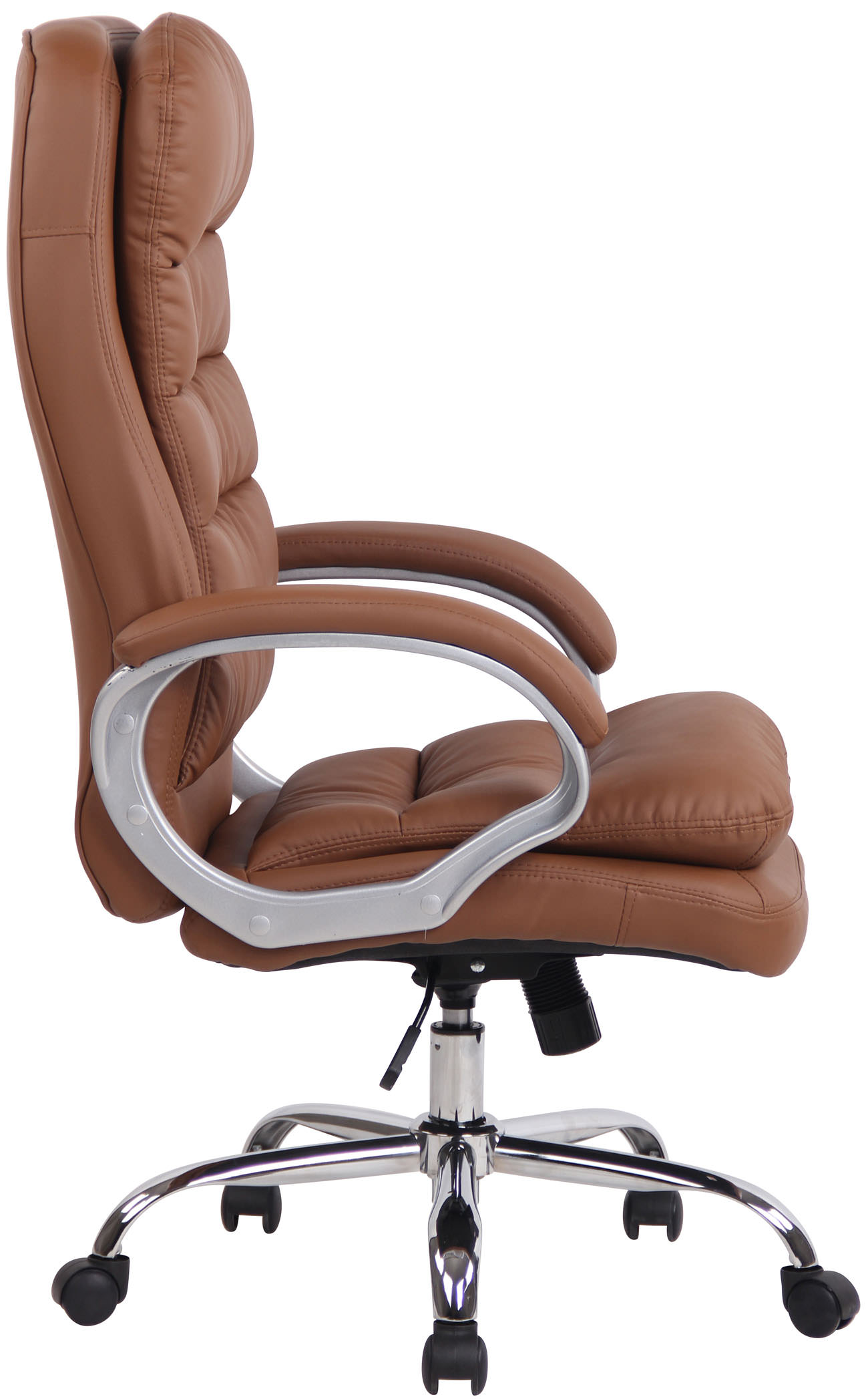 Der Chefsessel Vancouver ist ein exklusiver Bürostuhl mit einer sehr hochwertigen Polsterung und Kunstlederbezug. Kunstlederbezüge haben den Vorteil, dass sie elastisch sind und sich bei Entlastung wieder glatt ziehen. Dies sieht nicht nur schöner aus, sondern erhöht zusätzlich die Lebensdauer des Sitzbezuges. Das Gestell ist aus Metall in Chromoptik und dadurch sehr stabil.