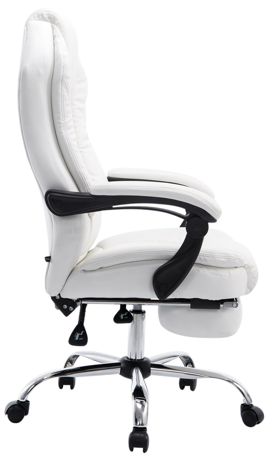 Für zusätzlichen Komfort lassen sich sowohl die Rückenlehne als auch die Fußstütze mühelos verstellen – ideal, um sich entspannt zurückzulehnen und die Beine hochzulegen. Die stufenlose Höhenverstellung ermöglicht eine individuelle Anpassung an Ihre Körpergröße.