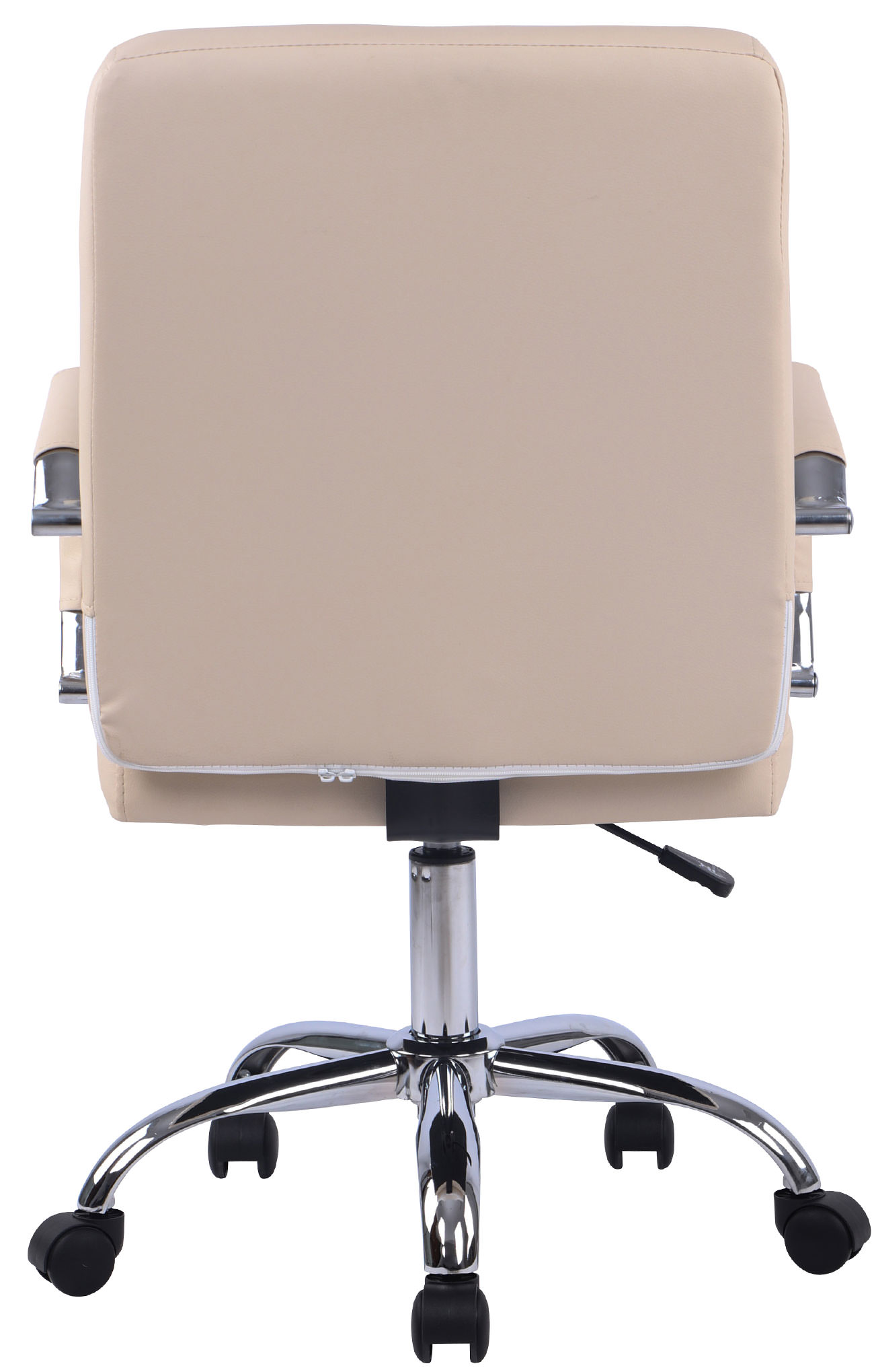 Der Kunstlederbezug mit den schönen Ziernähten sieht nicht nur edel aus, er ist auch besonders robust und pflegeleicht. Die Sitzhöhe ist mit dem Hebel unter dem Sitz stufenlos verstellbar. Dadurch ist ein hoher Komfort während des Arbeitens über einen längeren Zeitraum garantiert. Zudem verspricht das Gestell aus Metall in Chromoptik eine lange Lebensdauer. Der Bürostuhl steht standsicher auf fünf Leichtlaufrollen. Egal ob Hart- oder Teppichböden – Sie werden immer leicht und locker über den Boden rollen können.