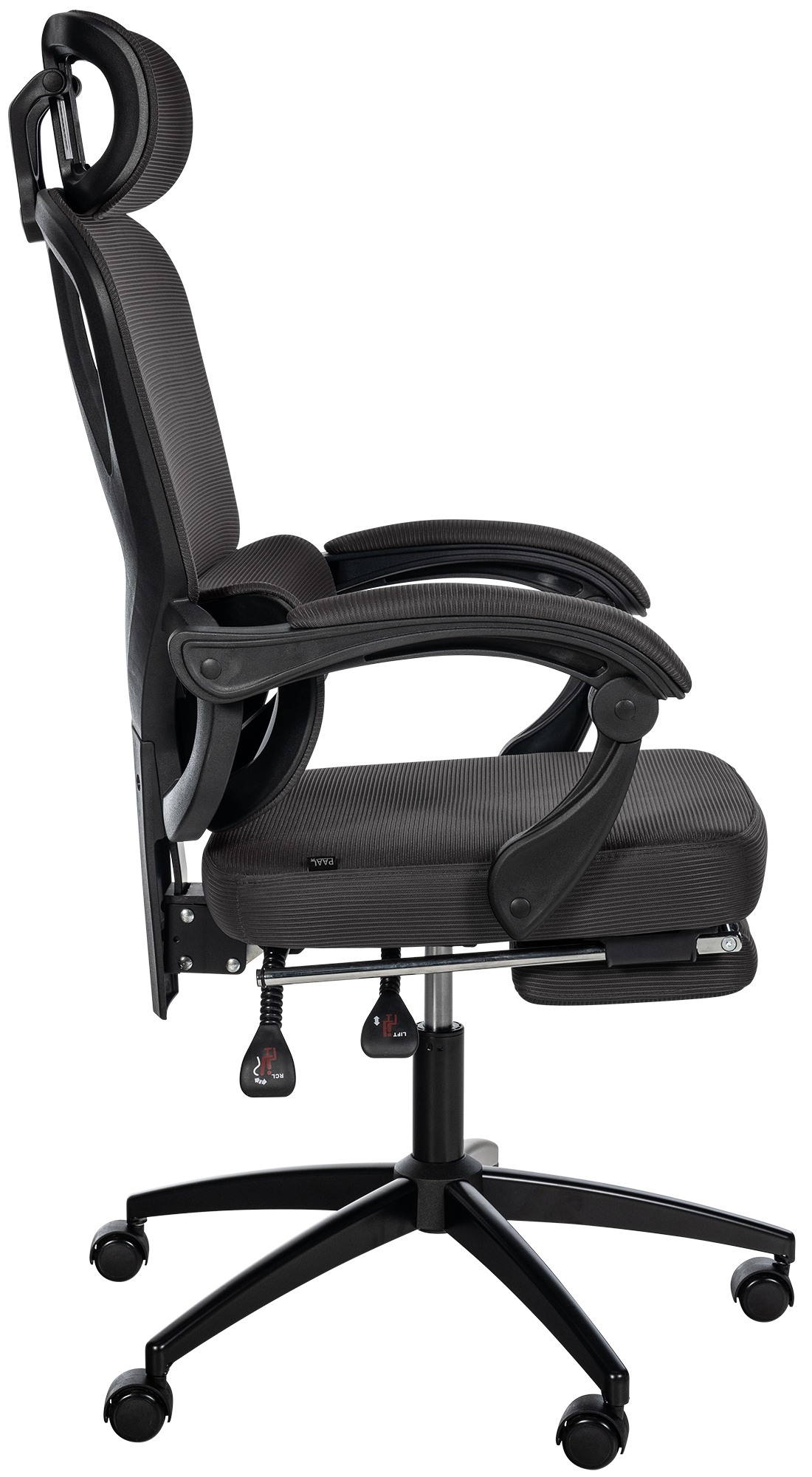 Gesamthöhe: Hochgefahren + Kopfstütze oben: 150 cm