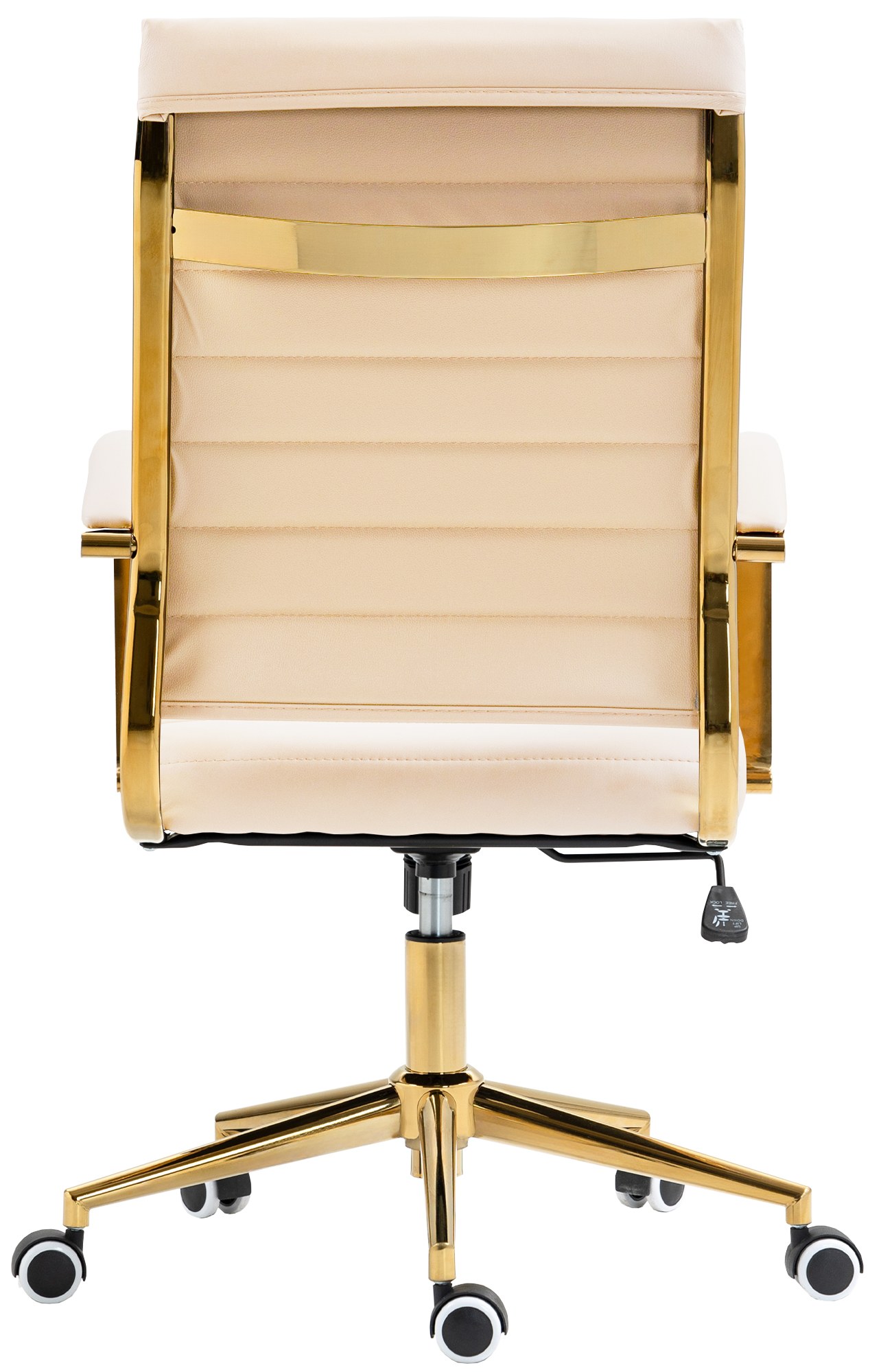 Die robuste Konstruktion gewährleistet eine hohe Stabilität und eine maximale Belastbarkeit von 136 kg. Die stilvolle Gold-Optik und die gummierten Leichtlaufrollen schützen Ihren Boden und verleihen Ihrem Büro einen Hauch von Eleganz.
