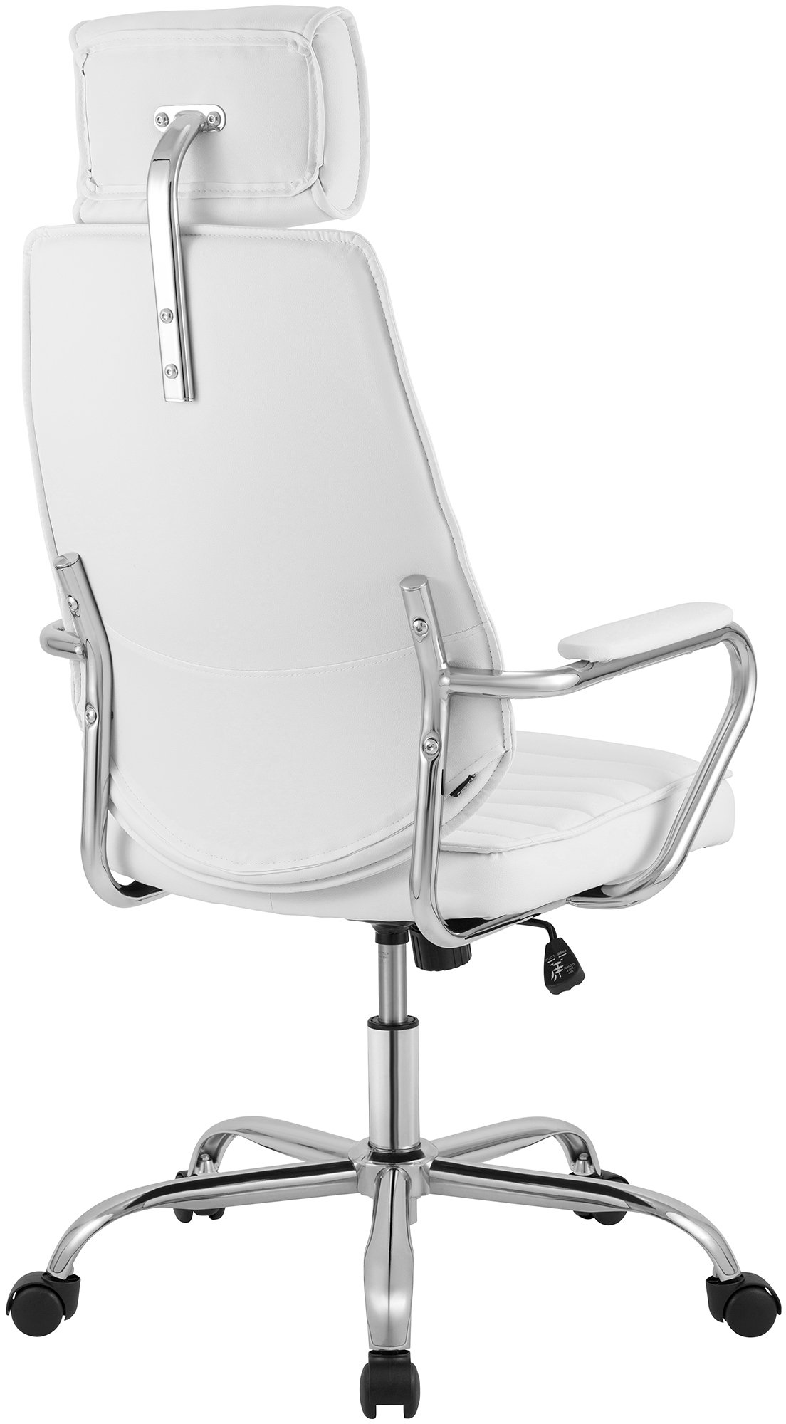 Die Rückenlehne ist ergonomisch geformt und verfügt über eine Kopfstütze. Der stufenlos höhenverstellbare Schreibtischstuhl verfügt über eine Wipp-Mechanik, bei der die Kippspannung variabel eingestellt werden kann. Der Sitz kann aber auch fest arretiert werden.